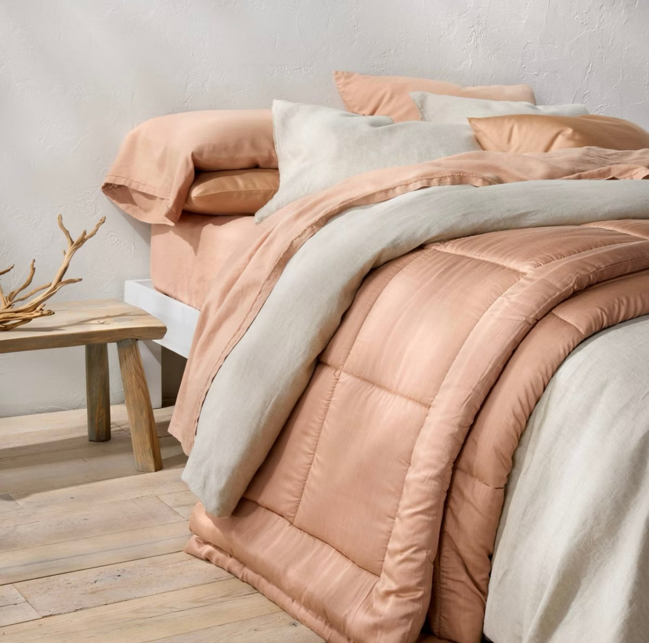 Este juego de edredón KING / Cal King está confeccionado en rayón de bambú, un material naturalmente suave, ligero y transpirable. Su diseño acolchado con costuras en forma de caja y tono sólido le da un toque moderno, relajado y a la vez elegante a tu habitación.