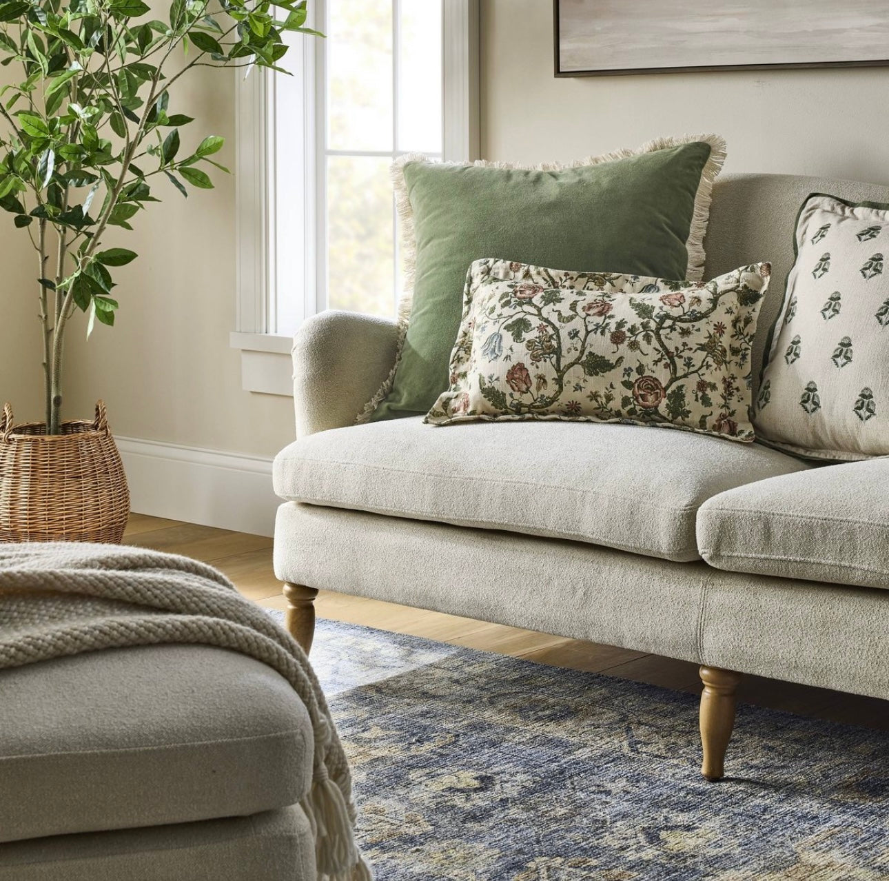 Transforma cualquier espacio con este elegante set de 2 cojines decorativos oversized en tono verde militar, diseñados por Studio McGee para THRESHOLD™. Su suave textura en terciopelo y los delicados flecos marfil los convierten en piezas únicas que aportan carácter, calidez y un aire sofisticado a tu hogar.