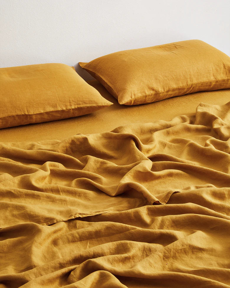KING SABANA AJUSTABLE 100% LINO FRANCÉS - TONO CÚRCUMA - BED THREADS.